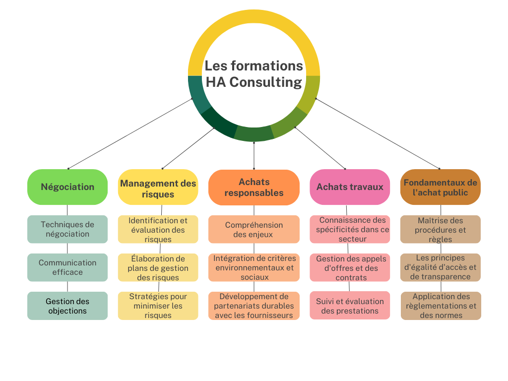 Que ce soit pour des formations sur la négociation, le management des risques, les achats responsables, les achats travaux, ou les fondamentaux de l’achat public, je suis déterminée à partager mes connaissances de manière efficace et à vous aider à atteindre vos objectifs de formation.